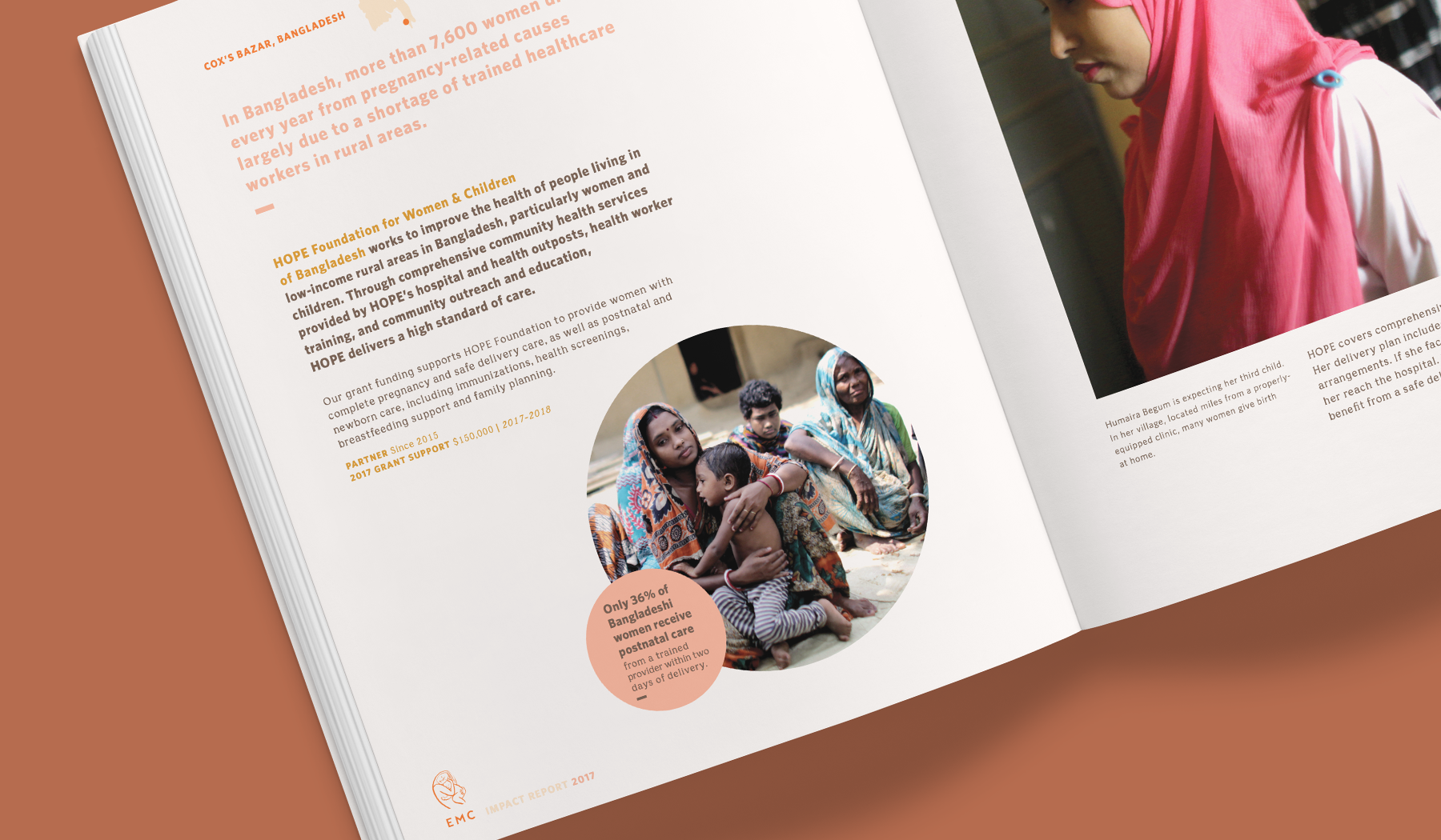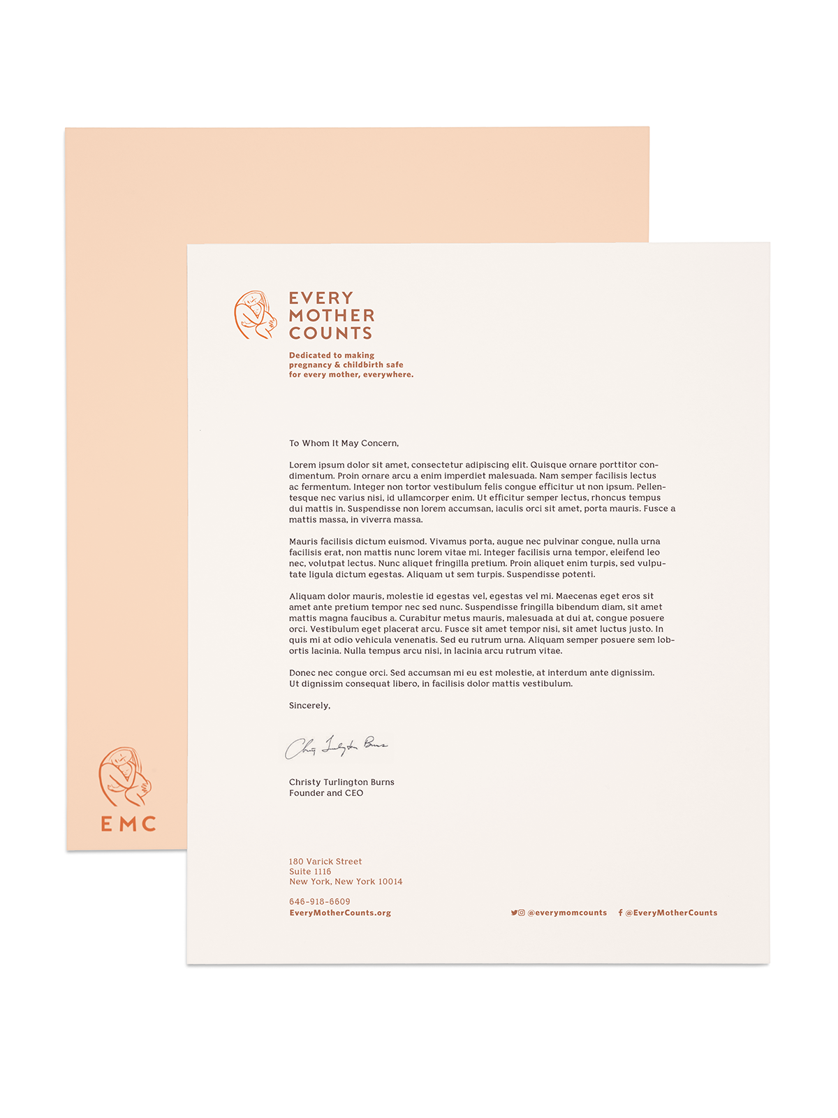 Every Mother Counts works to ensure that every mother around the world not only survives but thrives. The updated mark marries custom typography with the legacy icon of a mothers embrace; arranged in a flexible system for varied use and 12 languages. Custom illustrations created to bring awareness to the sensitive nature of the issues mothers face, straight forward infographic styles for data, warm-toned colors, and a balance of photography showcasing a mothers joy and struggle combine to create the full, impactful system.